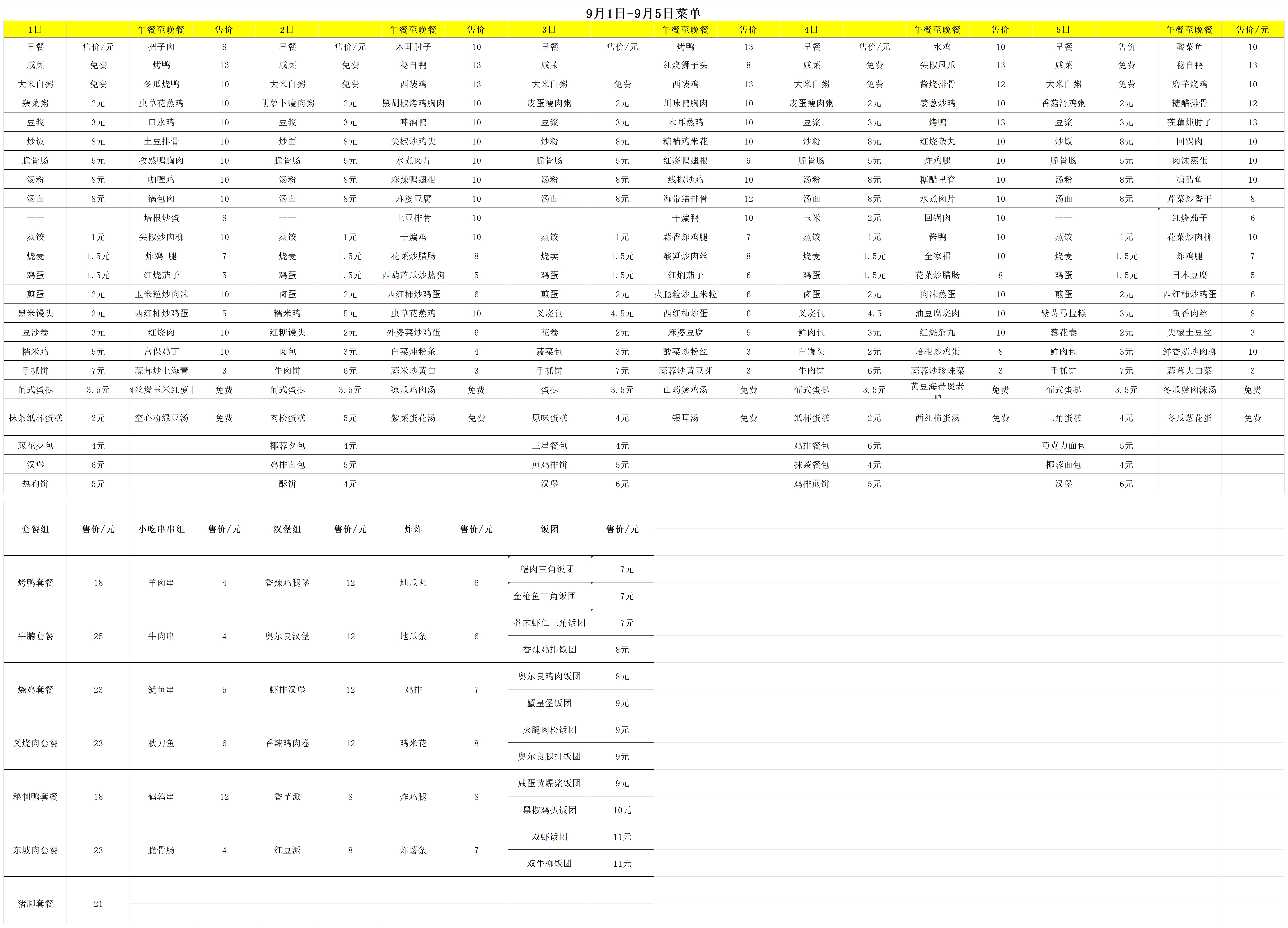 9月1日-9月5日每日食谱