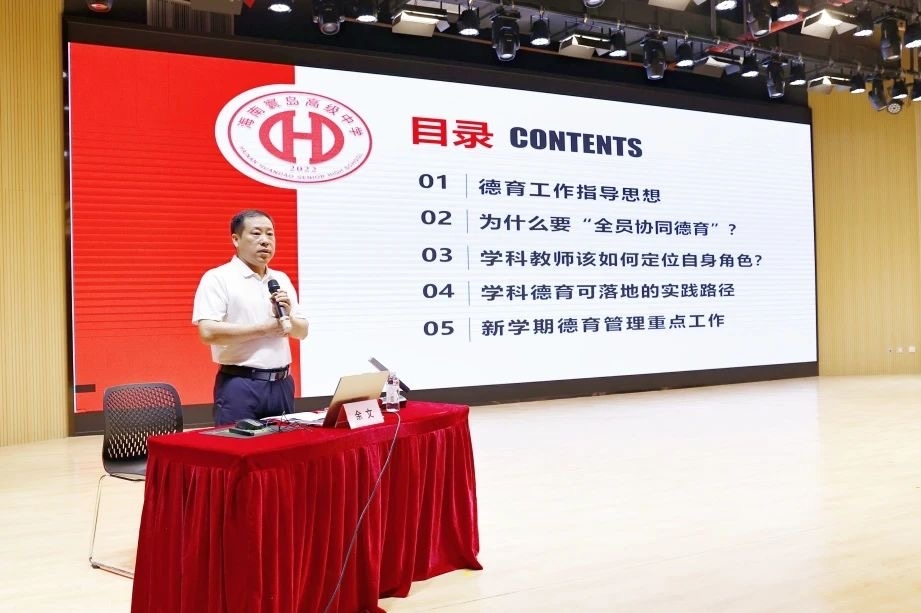 金秋启序,万象更新。新学期伊始,为持续提升教师队伍专业素养,扎实推进课堂教学提质增效,赋能学校高质量发展新篇章,8月19日至27日,海南寰岛高级中学开展全体教师系列培训活动;钱宏达校长以全局视野擘画发展路径,施洪飞副校长以专业深度破解课堂难题,余文副校长以协同思维筑牢德育防线,三位校长的三场讲座相辅相成,为全体教师注入了前行动力。