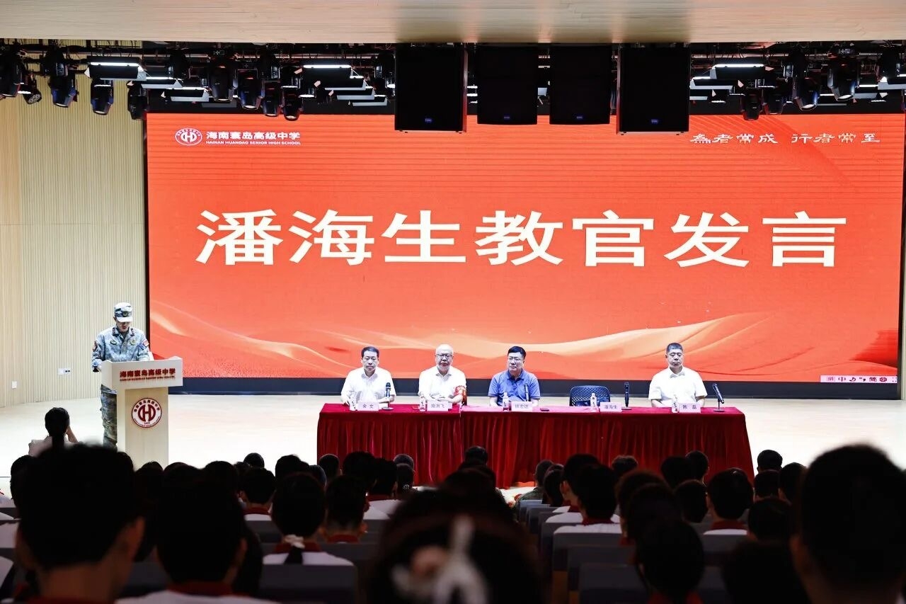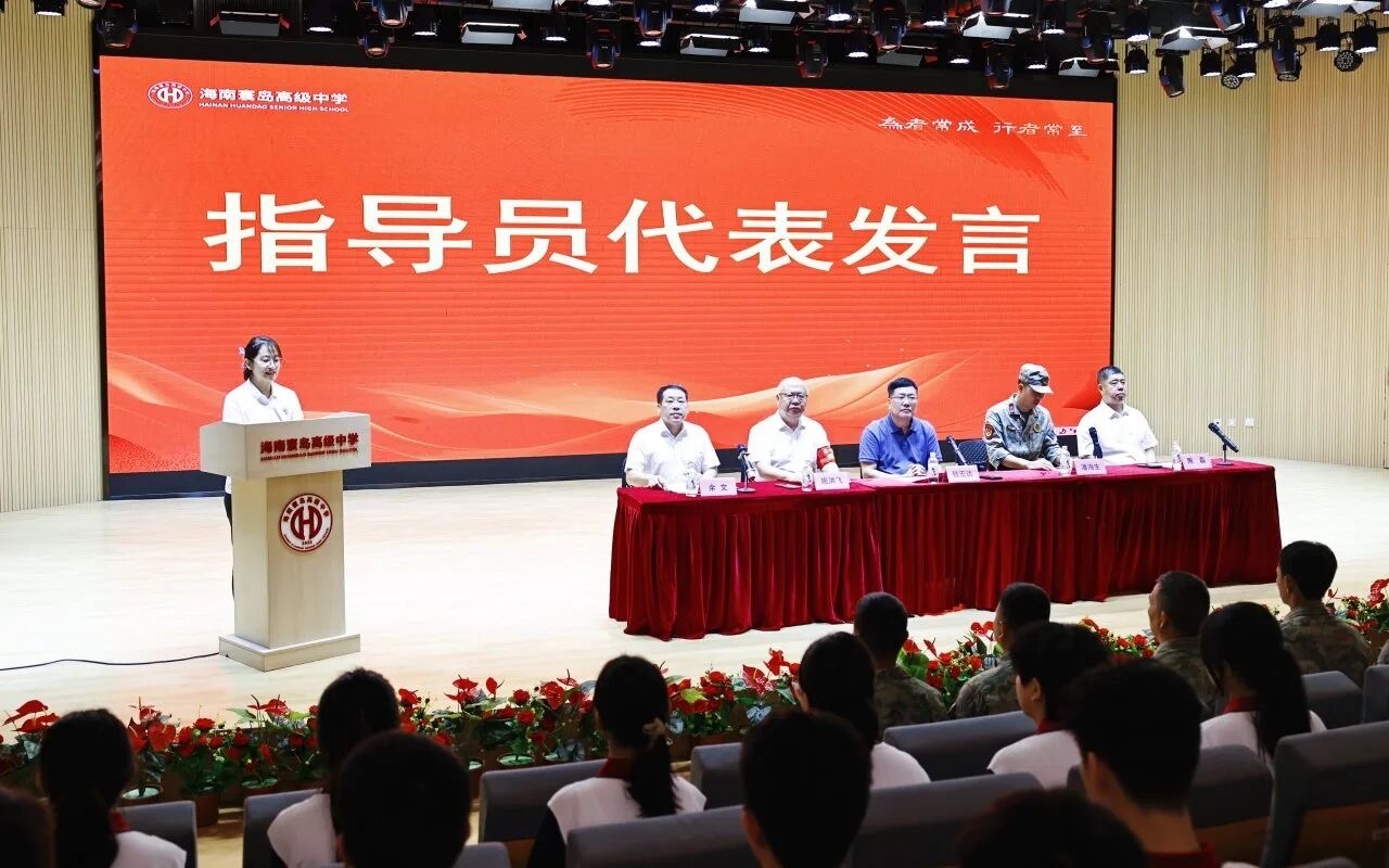 美兰区人民武装部总教官潘海生作为全体教官代表致辞。他着重强调了军事训练对青少年成长的深远意义,并且郑重承诺,会秉持严格的军训标准、运用科学的训练方法,助力同学们增强国防观念,熟练掌握基本军事技能。