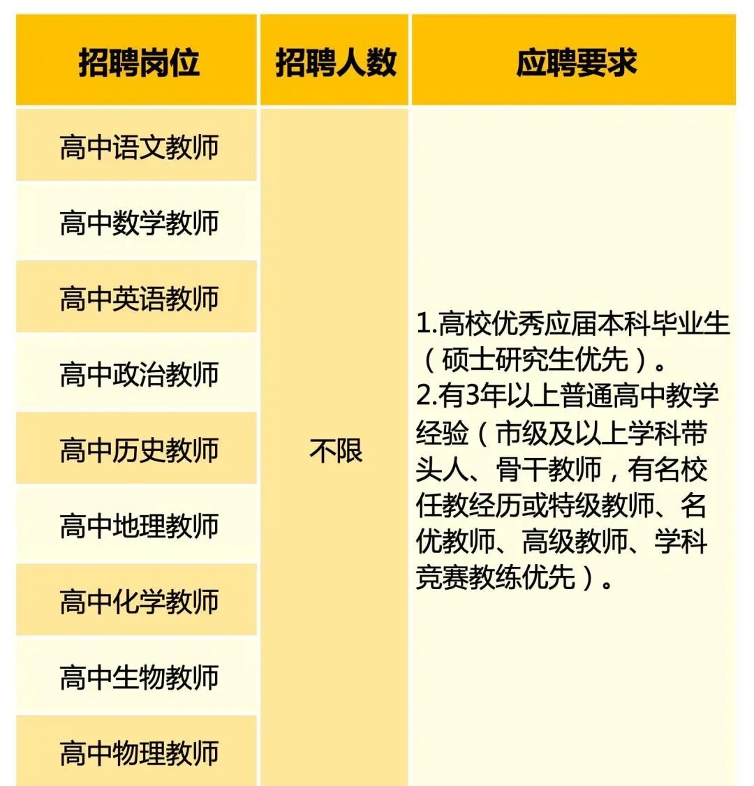 2.具有本科及以上学历,对应学科高中教师资格证,专业对口。